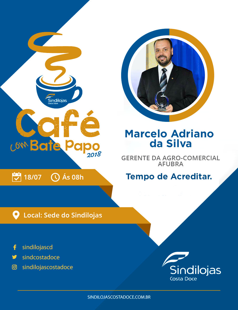 Dia 18/07 tem Café com Bate Papo aqui no Sindilojas Costa Doce, às 8h.
