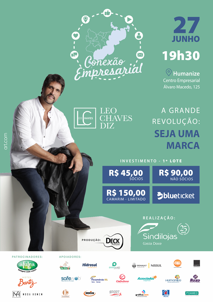 Em comemoração aos 25 anos do Sindilojas Costa Doce, realizaremos a 3º edição do Conexão Empresarial com a presença do cantor Leo Chaves, da dupla Victor e Leo.