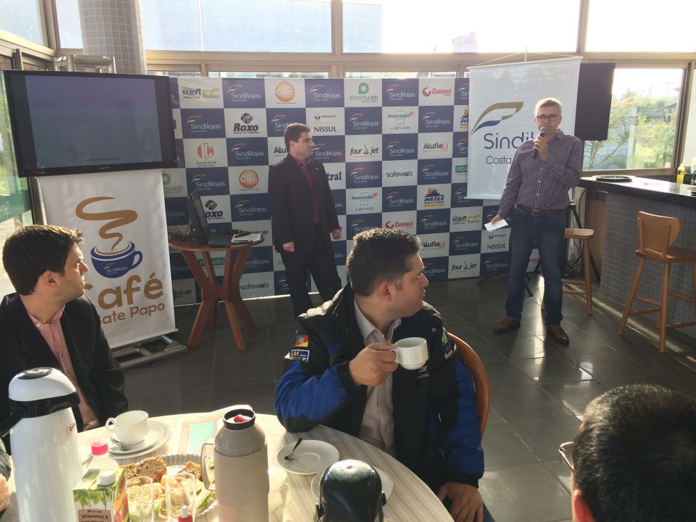 A nona edição do Café com Bate Papo, promovida pelo Sindilojas Costa Doce, aconteceu na manhã desta terça-feira (24), no quiosque do Sesc. O palestrante da manhã f