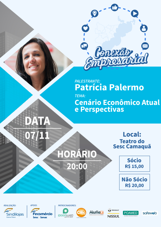 Nesta edição teremos como palestrante a economista-chefe da Fecomércio-RS Patricia Palermo.