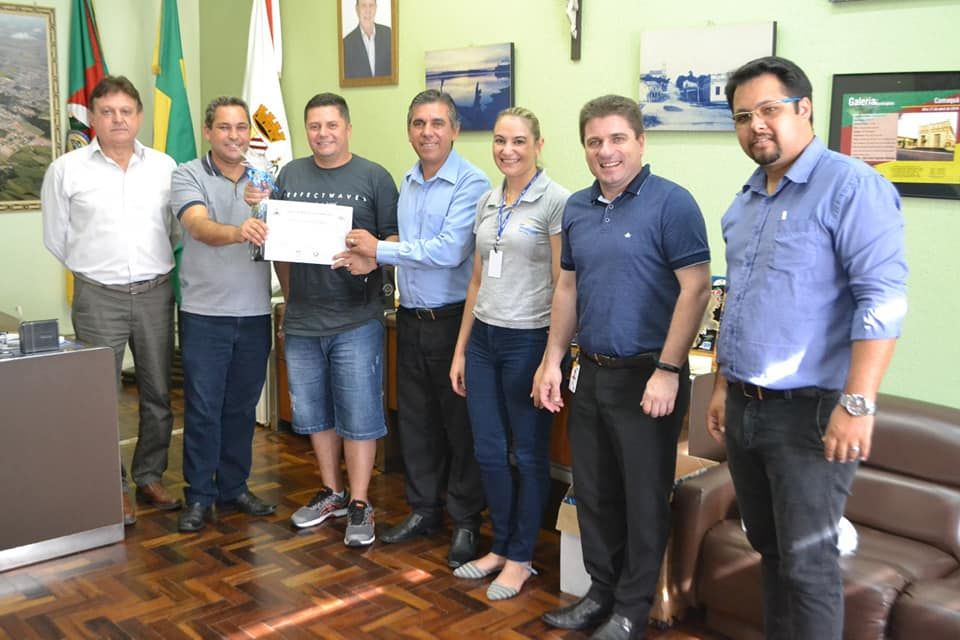 A Executiva Jane Kila juntamente com Daniel Sperb do SESC, representaram o presidente Otávio Morais na entrega dos certificados aos empresários entregaram um mimo em agradecimento pela parceria.