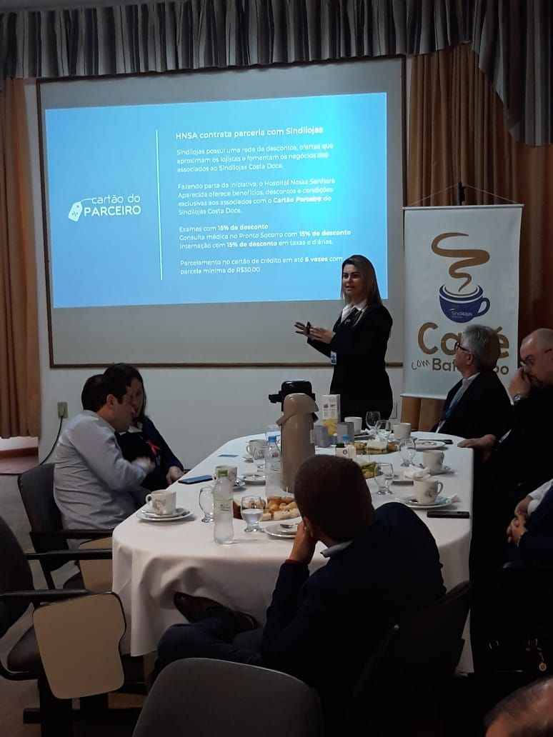 Na manhã desta quarta feira (16), o Sindilojas Costa Doce promoveu mais uma edição do Café com Bate Papo. O evento foi realizado no auditório do Hospital Nossa Senhora Aparecida.