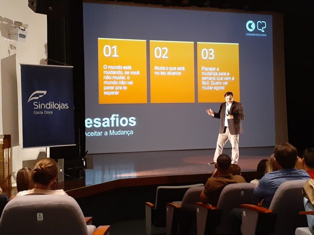 Na noite de ontem (19), o Sindilojas Costa Doce realizou no teatro do Sesc Camaquã a palestra: A Era da Atitude com Cesar Pancinha.