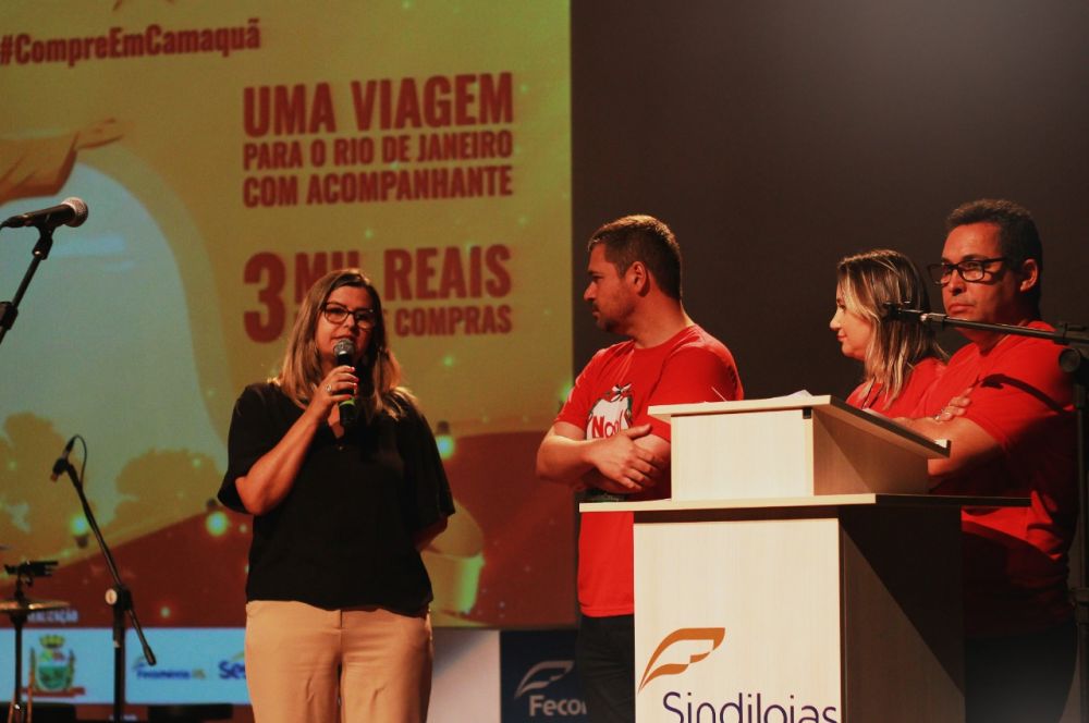 E por último a premiação mais esperada da noite, uma viagem para o Rio de Janeiro com acompanhante no valor de R$ 5.000,00. A ganhadora Clair Fernandes efetuou suas compras na loja Passo a Passo Calçados e foi a sortuda da vez.